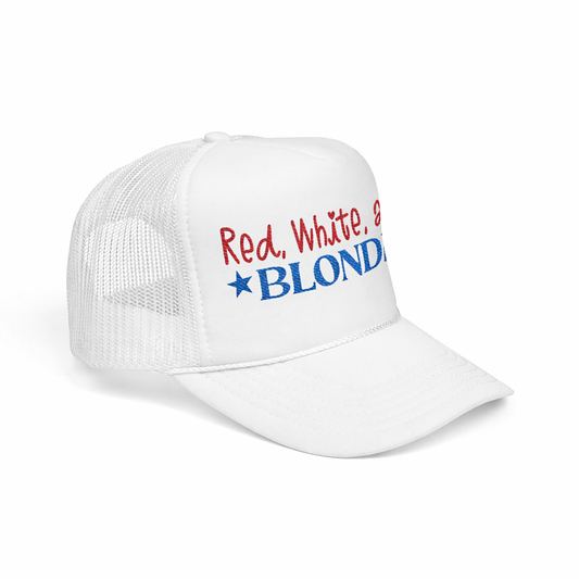 Red, White, and Blonde Embroidered Trucker Hat