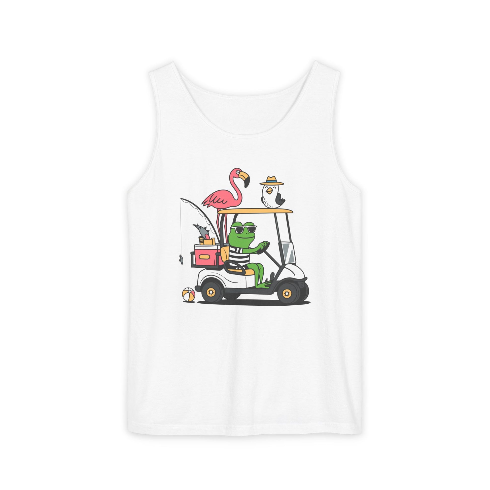 Golf Cart Frog & Flamingo Comfort Colors Tank Top